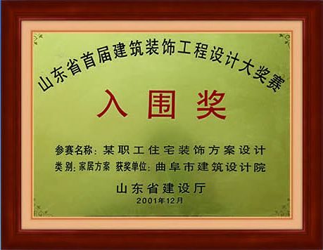 零一年職工宿舍裝飾方案設(shè)計(jì)山東省首屆建筑裝飾工程設(shè)計(jì)大獎(jiǎng)賽入圍獎(jiǎng)