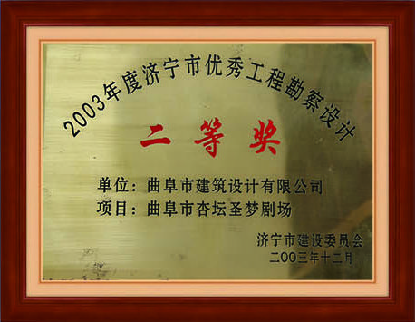 零三年曲阜市杏壇圣夢(mèng)劇場(chǎng)濟(jì)寧市優(yōu)秀工程勘察設(shè)計(jì)二等獎(jiǎng)