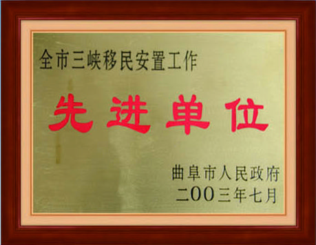 零三年全市三峽移民安置工作先進(jìn)單位