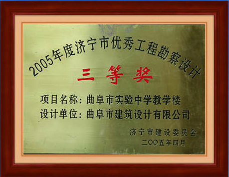 零五年曲阜市實(shí)驗(yàn)中學(xué)教學(xué)樓濟(jì)寧市優(yōu)秀工程勘探設(shè)計(jì)三等獎(jiǎng)